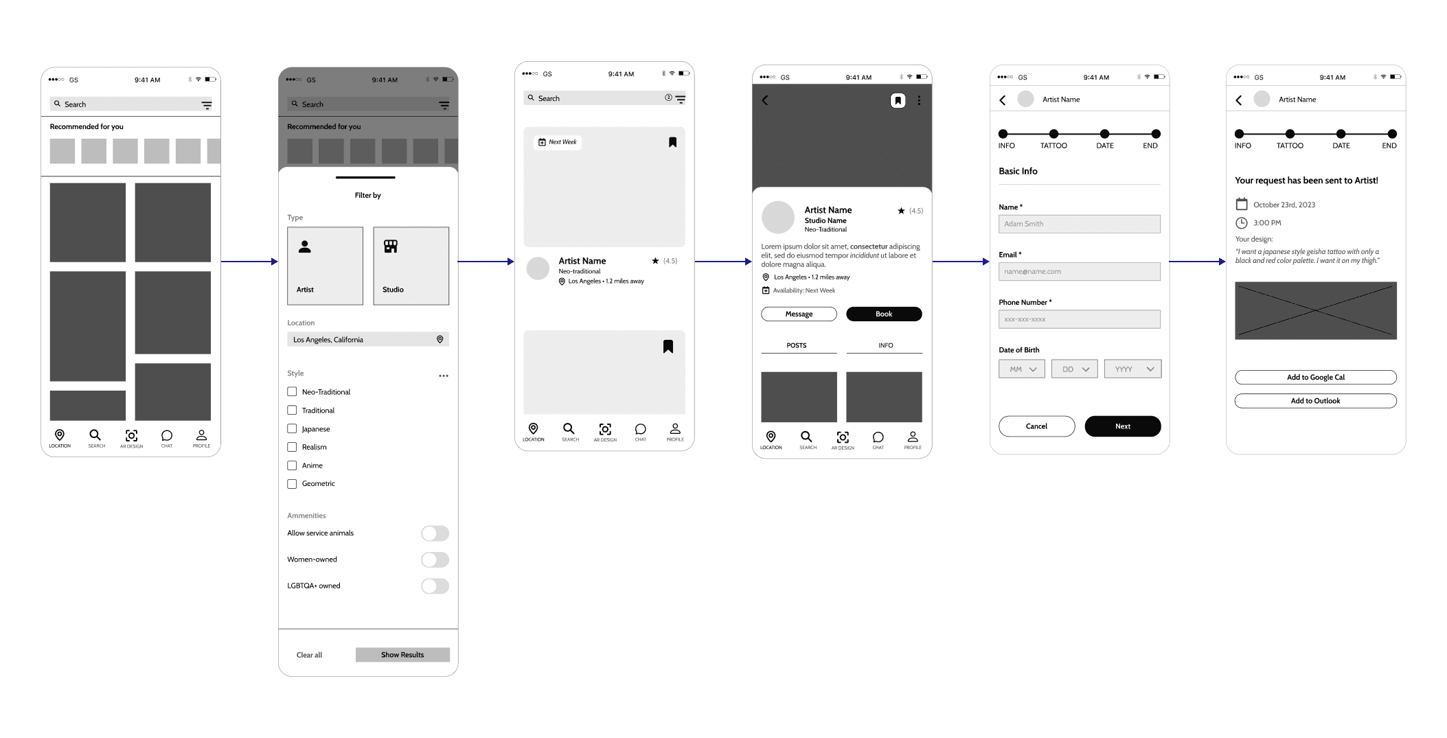 Customers can use the filtered search to find an artist or studio that meets their tattoo needs, browse portfolios, and book their preferred artist.