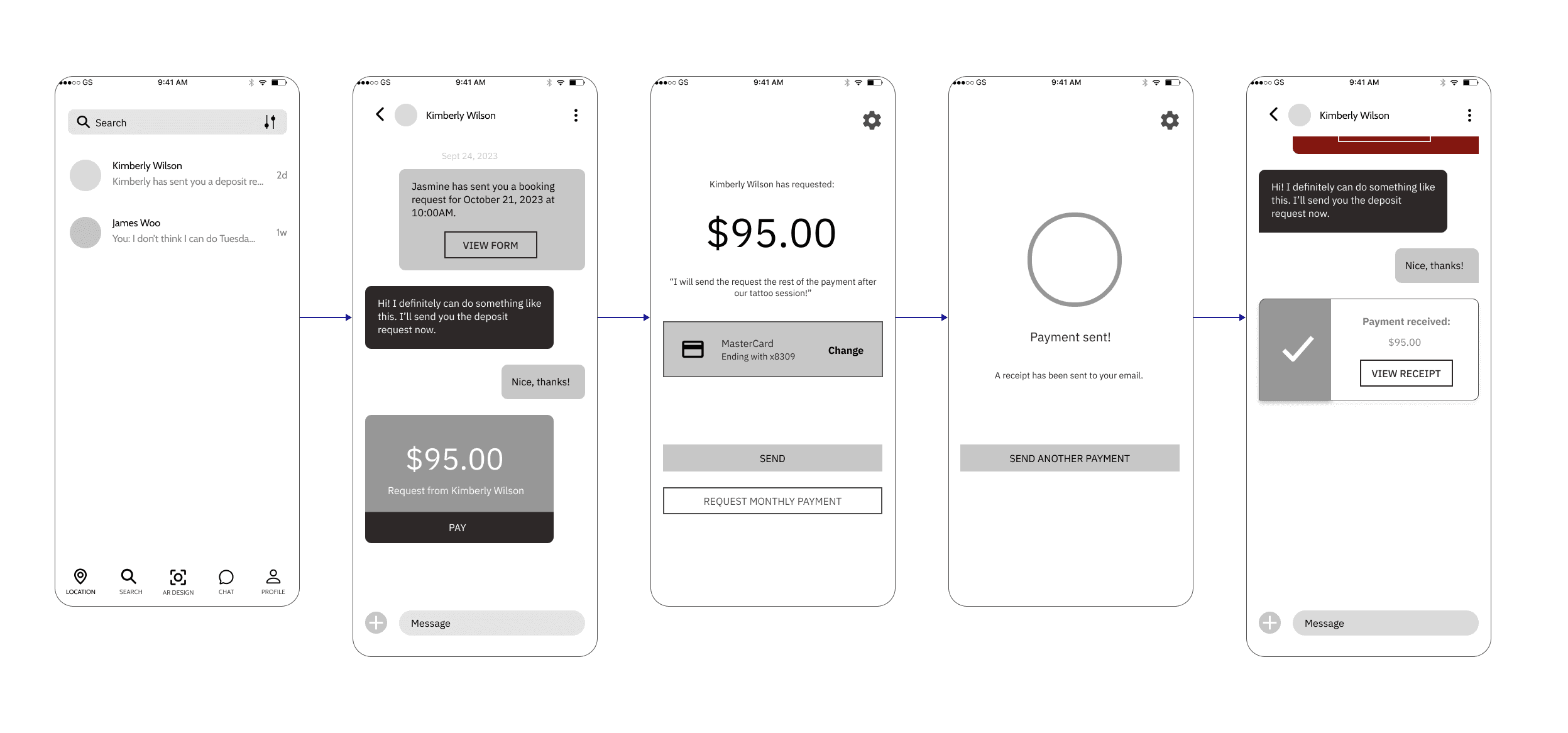 Customers and artists can easily communicate via the chat function to send messages and payments.